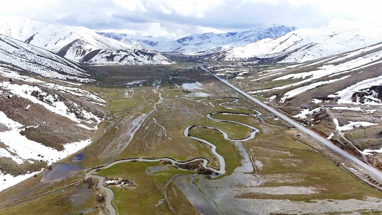 Güzeldere Vadisi’nde uzayıp giden menderesler, ilkbaharın gelmesiyle birlikte doğanın yeniden canlandığını gösteriyor. Havadan görüntülenen bu menderesler, kıvrımlı yapısıyla adeta bir tabloyu andırıyor. Kış mevsiminin ardından havaların ısınmasıyla birlikte yeşermeye başlayan bölge, baharın en göz alıcı renklerine ev sahipliği yapmaktadır. Yağışların etkisiyle debisi artan menderesler, kilometrelerce uzanan yapısıyla dikkat çekiyor.