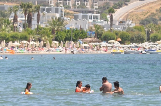 Muğla'nın Bodrum ilçesindeki Gümbet sahili, sıcaklıkların artmasıyla birlikte yerli ve yabancı turistlerin ilgisini çekmeye başladı. Hava sıcaklığının 30 dereceye ulaştığı bölgede, deniz suyu sıcaklığı ise 20 derece olarak ölçülüyor. Turistler, denize girmekle kalmayıp, su sporları yaparak keyifli anlar geçiriyor. Özellikle paraşütle atlayan ziyaretçiler, Bodrum'un eşsiz koylarını gökyüzünden izleme fırsatı buluyor. Ayrıca, meteoroloji yetkililerinden alınan bilgilere göre, Bodrum'da hafta ortasında yağış beklendiği bildiriliyor, ancak hava sıcaklıklarında herhangi bir değişiklik beklenmiyor.