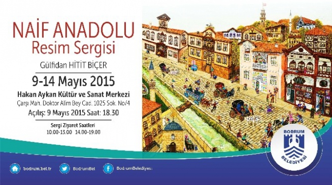 Bodrum Belediyesi Hakan Aykan Kültür ve Sanat Merkezi, 9-14 Mayıs 2015 tarihleri arasında ressam Gülfidan Hitit Biçer’in “Naif Anadolu” isimli resim sergisine ev sahipliği yapacak. Sergi, 9 Mayıs’ta saat 18.30'da düzenlenecek açılış kokteyli ile ziyarete açılacak. 14 Mayıs’a kadar devam edecek olan sergi, her gün 10.00 - 19.00 saatleri arasında sanatseverlere kapılarını açacak. Gülfidan Hitit Biçer, yapıtlarında çevresinden esinlenerek veya imgesel tasarımlar üretmesiyle tanınıyor. Daha önce farklı illerde birçok kişisel sergi açmış olan sanatçı, ayrıca karma sergilere de katılım göstermiştir. Eserleri, özel ve resmi koleksiyonlarda yer bulmuştur.