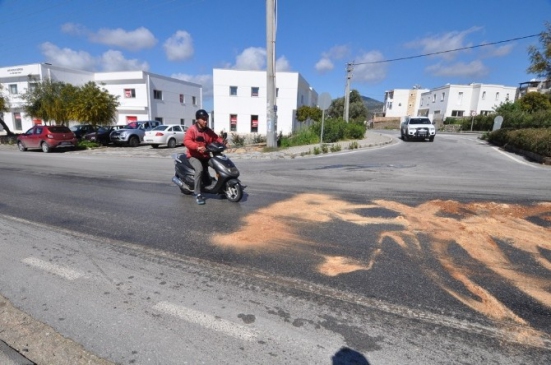 Bodrum'da meydana gelen olayda, yola dökülen mazot nedeniyle motosiklet sürücüleri zor anlar yaşadı. Gümbet Mahallesi Kavaklı Sarnıç Caddesi'nde bilinmeyen bir nedenden ötürü bir kilometrelik alana mazot yayıldı. Kayganlaşan yolda motosikletler devrilirken, olayın ardından Bodrum İlçe Emniyet Müdürlüğü Trafik Büro ve Bodrum Belediyesi Zabıta Trafik ekipleri, yolu trafiğe kapatarak temizlik çalışması başlattı. Yaklaşık 100 çuval talaşla yapılan temizlik işlemi sonrasında cadde, trafiğe açıldı.
