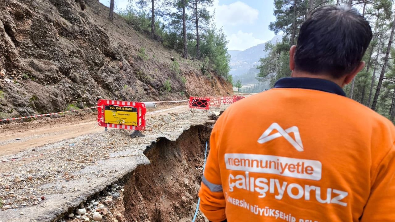 Mersin genelinde etkili olan sağanak yağışların ardından Tarsus’un yüksek kesimlerinde meydana gelen heyelanların izleri siliniyor. Yağışlar nedeniyle yolun bir bölümünde çökme meydana gelen Boğazpınar Mahallesi’nde, Mersin Büyükşehir Belediyesi Tarsus-Çamlıyayla Şube Müdürlüğü ekipleri hızlı bir müdahale gerçekleştirdi.