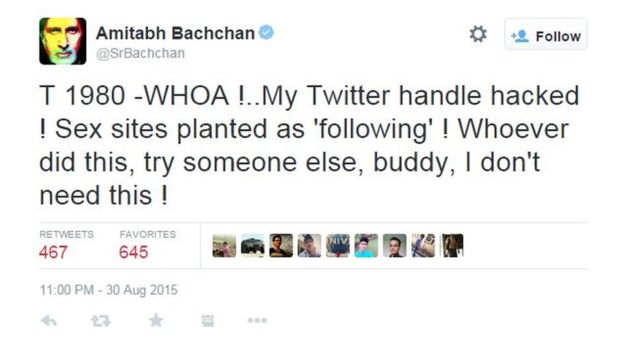 YENİ DELHİ - Bollywood yıldızı Amitabh Bachchan'ın twitter hesabı hacklendi. Hindistan'da Twitter'da en çok takip edilen kişi olan 72 yaşındaki yıldız Bachchan olayı, hesabından takipçileriyle paylaştı.