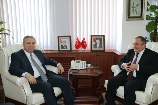 Bolu Belediye Başkanı Alaaddin Yılmaz, Düzce Valisi Ali Fidan’ı makamında ziyaret etti. Bu ziyarete Bolu Ticaret ve Sanayi Odası Başkanı Türker Ateş ile Abant İzzet Baysal Üniversitesi Rektörü Prof. Dr. Hayri Coşkun da eşlik etti. Vali Ali Fidan, ziyaretten duyduğu memnuniyeti dile getirerek, Başkan Yılmaz ve beraberindekilere teşekkür etti.
