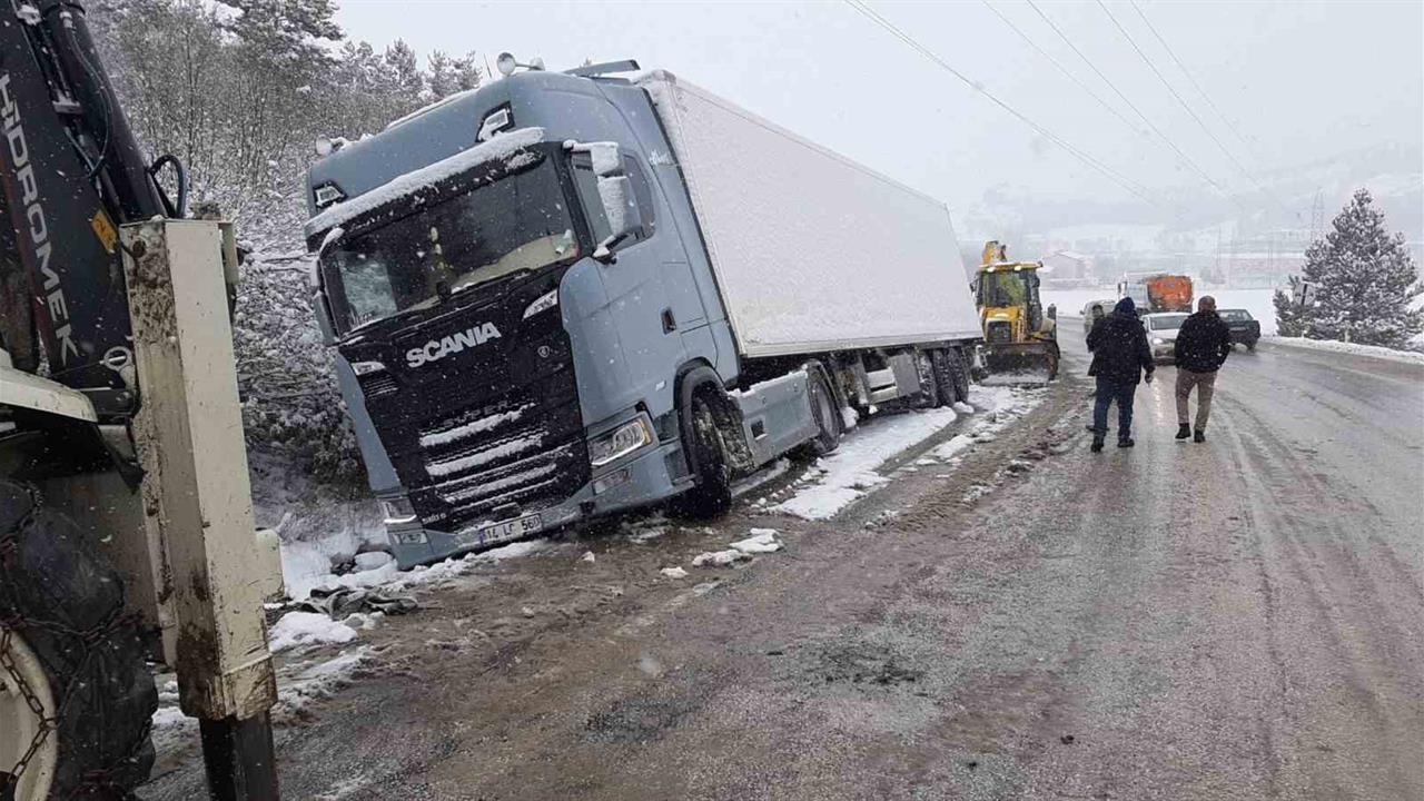 Kazanın ardından, tırın bulunduğu yerden çıkarılması için bölgeye iş makineleri gönderildi. Yan yatan ağır tonajlı araç, iki ayrı kepçenin uzun süren çalışmaları sonucunda halatlarla çekilerek, zor şartlar altında yola çıkarılabildi. Neyse ki kazada herhangi bir yaralanma yaşanmadı, fakat tırda maddi hasar meydana geldi. Ayrıca, bölgede etkili olan kar yağışı nedeniyle yetkililer, sürücülere zincirsiz yola çıkmamaları ve takip mesafesini korumaları konusunda uyarılarda bulundu.