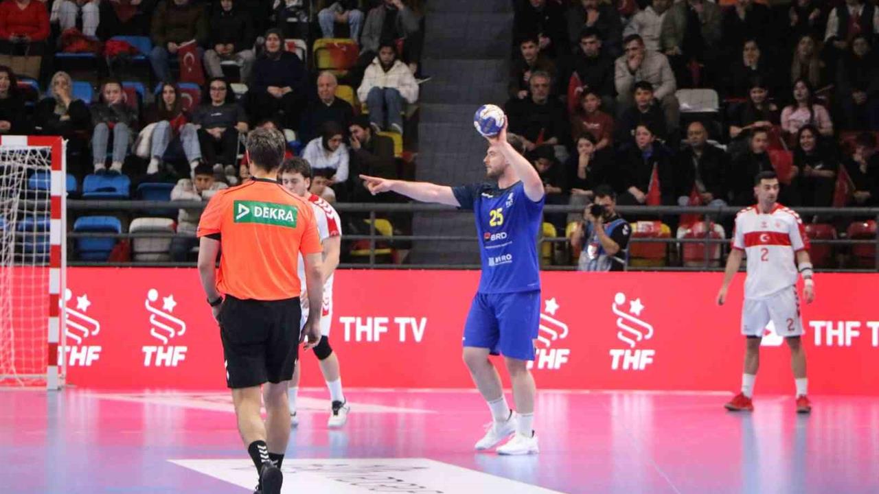 Bolu'da gerçekleştirilen bu önemli müsabaka, A Milli Takımlar düzeyinde bir ilk olma özelliği taşıyordu. Bolulu sporseverler, maça büyük ilgi göstererek salonu doldurdu. Maç öncesinde koltuklar Türk bayrakları ile süslendi. Türkiye Hentbol Federasyonu Başkanı Mesut Çebi ve Romanya Hentbol Federasyonu Başkanı Constantin Din de maçı izleyenler arasındaydı. İlk yarıda Romanya, 19-15'lik skorla öne geçti ve maçı da 37-32 kazanarak rövanş öncesi büyük avantaj elde etti. Eleme turunun ikinci maçı, 22 Mart Pazar günü saat 20.00'de Romanya'nın Buzau kentinde yapılacak.