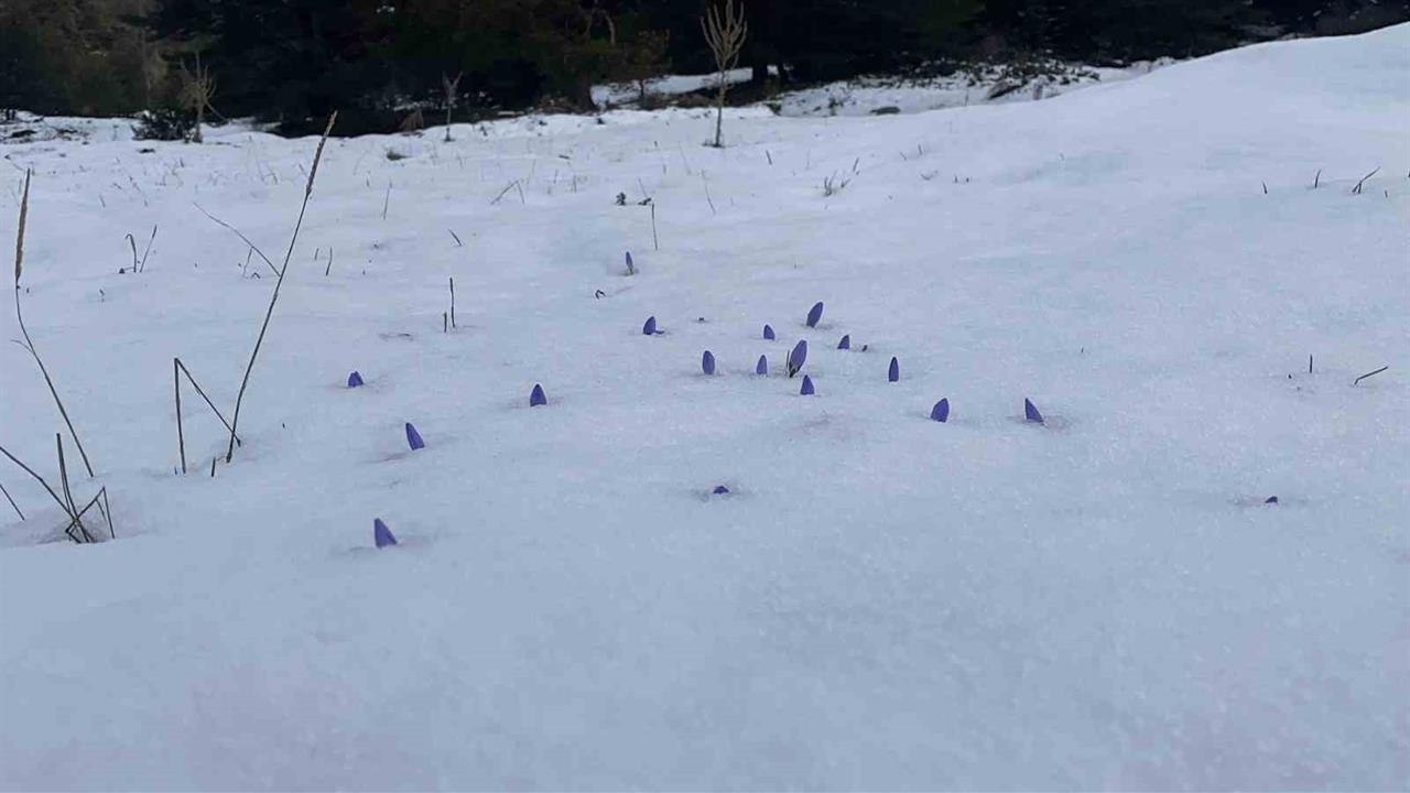 Bölgeye yeniden gelen kar yağışı, yaylayı beyaza bürürken, çiğdemlerin kar altında kalmasına neden oldu. Köroğlu Dağları’nın eteklerinde yer alan bu yayla, 14 farklı köyün ortak kullanım alanı olarak biliniyor ve çiğdemlerin açmasıyla birlikte doğanın uyanışını simgeliyor. Ancak, kar yağışıyla birlikte bu güzel görüntü, çiğdemlerin karla kaplanmasına yol açtı.