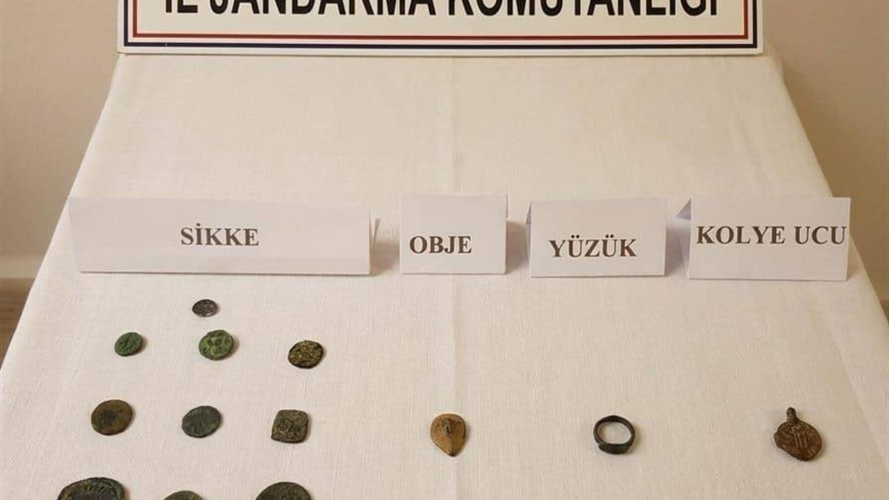 Şüphelilerin üzerinde yapılan aramalarda, 6 adet Roma dönemine ait bronz sikke, 2 adet Osmanlı dönemine ait bronz sikke, 2 adet Bizans dönemine ait gümüş sikke, 1 adet Roma dönemine ait bronz yüzük, 2 adet Roma dönemine ait altın kolye ucu ile 1 adet Bizans dönemine ait altın obje ele geçirildi. Ele geçirilen eserlerin ilk değerlendirmelerine göre orijinal oldukları öğrenildi.