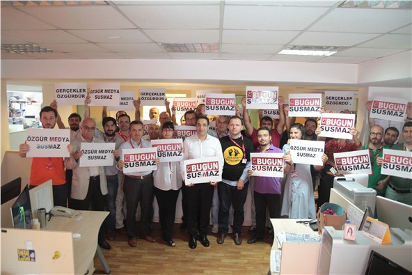 Bugün gazetesi çalışanları da baskına medya diliyle tepkisini gösterdi. Başta Bugün Gazetesi Genel Yayın Yönetmeni Erhan Başyurt olmak üzere, Bugün çalışanları ‘Özgür medya susmaz’ ve ‘Bugün susmaz’ yazılı dövizlerle poz verdi.