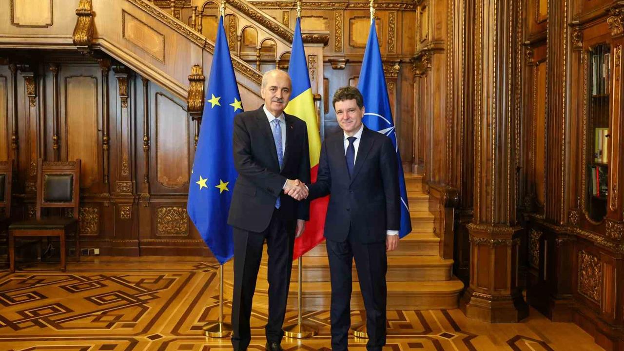 TBMM Başkanı Numan Kurtulmuş, Romanya'daki resmi temaslarına devam ediyor. Bükreş'teki Cumhurbaşkanlığı Sarayı'nda gerçekleşen kabulde, iki ülke arasındaki ikili ilişkiler ve parlamentolar arası iş birliği konuları ele alındı. Ayrıca, güncel küresel ve bölgesel meseleler hakkında da görüş alışverişinde bulunuldu.