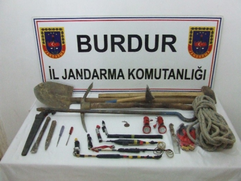 Burdur İl Jandarma Komutanlığı, Ağlasun ilçesi Hisar Köyü Divanköy mevkisinde kaçak kazı yapıldığı ihbarı üzerine bir operasyon düzenledi. Edinilen bilgilere göre, M.B., A.Y., S.B. ve İ.K. isimli şüpheliler, jandarma ekipleri tarafından suçüstü yakalandı. Şüphelilerin yanında, kazı işlerinde kullanılan çok sayıda malzeme ile birlikte bir etnografik Osmanlı parası ele geçirildi. Operasyonda, 4 adet el yapımı define arama aparatı, kürek, kazma, çapa, manila demiri, balyoz, çekiç, plastik kova, bıçak ve 15 metre uzunluğunda ip bulundu. Ele geçirilen malzemelere Cumhuriyet Başsavcılığı'nın talimatıyla el konulurken, gözaltına alınan şüpheliler ifadelerinin alınmasının ardından serbest bırakıldı.