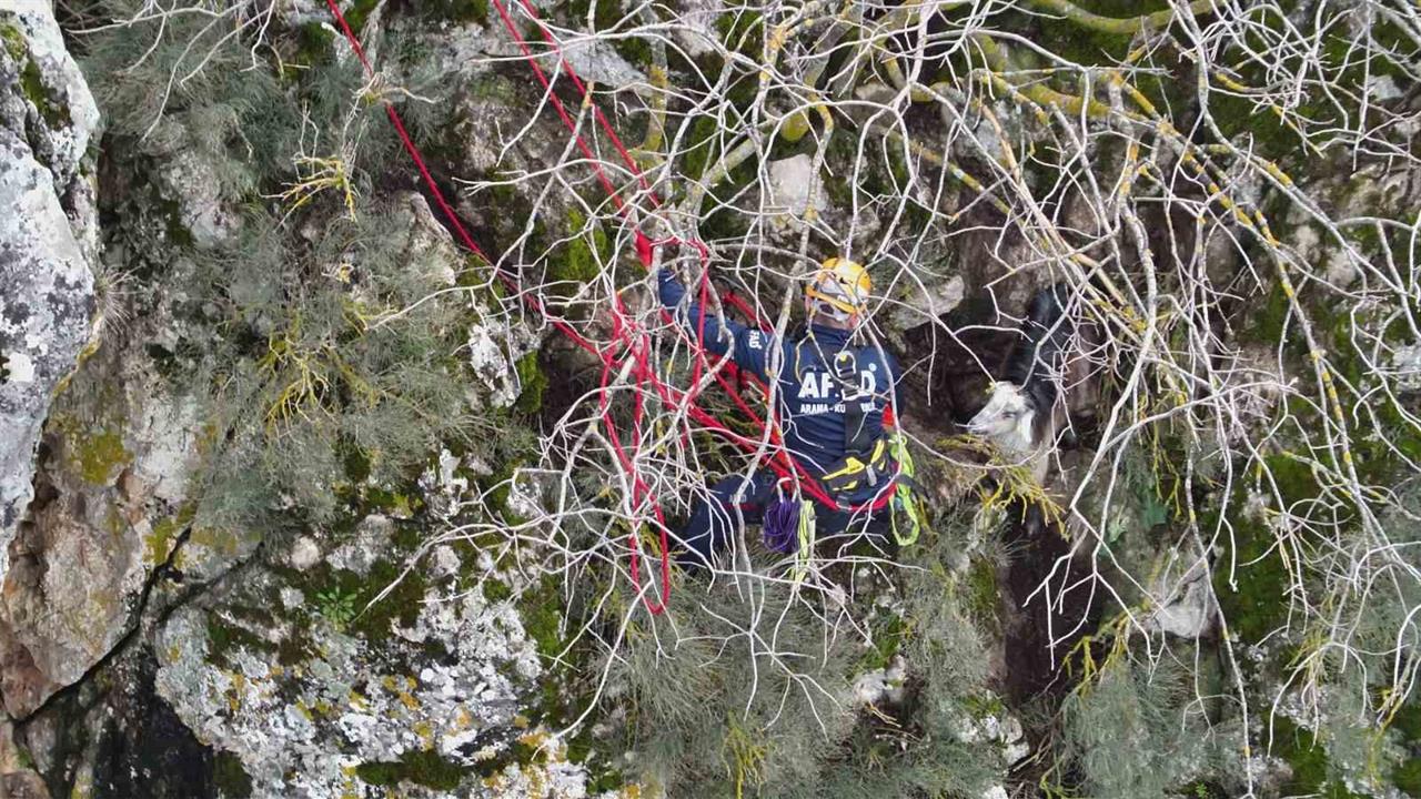 Burdur Çeltikçi'de dağlık alanda mahsur kalan bir keçi, ekiplerin çabasıyla kurtarılarak sahibine ulaştırıldı.