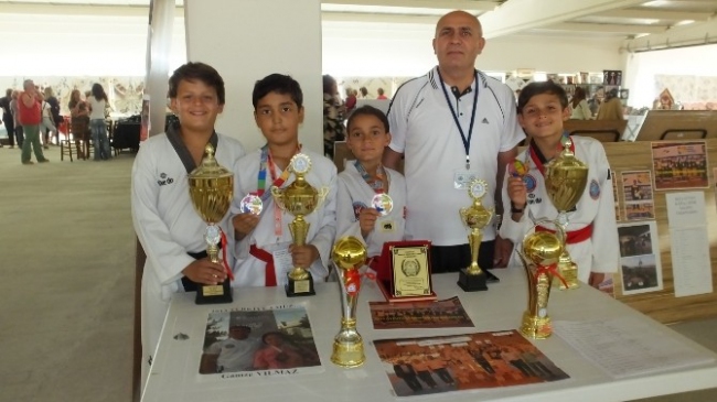 Balıkesir'in Burhaniye ilçesinde, Halk Eğitim Merkezi Müdürlüğü tarafından düzenlenen yıl sonu sergisi, yerel halkın ilgisini çekti. Ahmet Akın Kültür Merkezi'nde açılan sergide, farklı el emeği eserlerin yanı sıra Burhaniyeli tekvandocuların kazandığı madalyalar ve kupalar da sergilendi. Antrenör Rıza Güven, madalya standının ziyaretçilerden yoğun ilgi gördüğünü belirtti. Güven, "Bu güne kadar çok sayıda kupa ve madalya aldık. Burada sergilediklerimiz, yıl içinde kazandığımız ödüller. Ödüllerimizin sayısı her geçen gün artıyor. Standımızı ziyaret edenlere ve destek olanlara teşekkür ediyoruz" dedi.