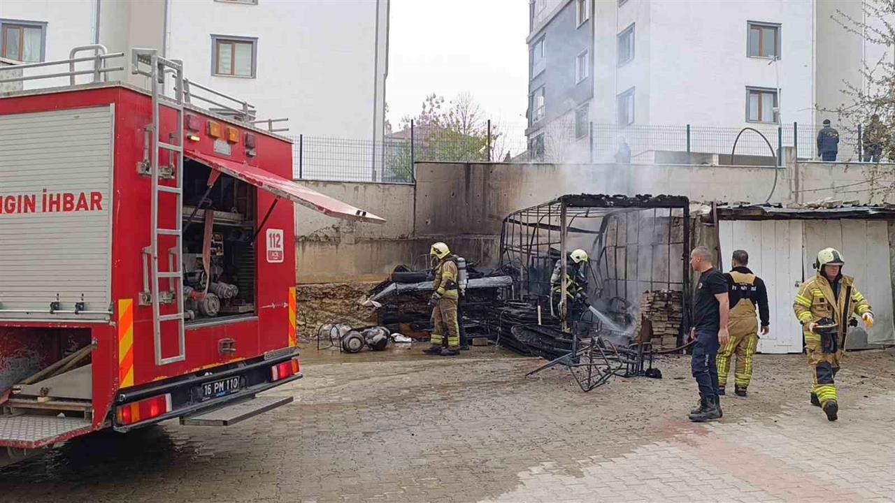 Yangın, saat 14.30 sularında İnegöl ilçesine bağlı Yunus Emre Mahallesi Mevlana Caddesi üzerindeki bir sitenin bahçesinde yer alan ardiye deposunda ortaya çıktı. Henüz kesinleşmeyen bir sebepten ötürü başlayan yangın, kısa sürede büyüyerek içerideki tüpün patlamasına yol açtı. Olayı gören vatandaşların durumu bildirmesi üzerine, itfaiye ekipleri olay yerine intikal etti. Ekipler, yangına hızla müdahale ederek alevleri kontrol altına almayı başardı.