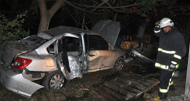 Edinilen bilgilere göre, İnegöl'e bağlı Gündüzlü Mahallesi'nden İnegöl'e seyir halinde olan 58 yaşındaki sürücü Yaşar Yıldız, 16 Y 8908 plakalı otomobiliyle Hamamlı Mahallesi mevkiinde yol yapım çalışmaları nedeniyle direksiyon hakimiyetini kaybetti. Kontrolden çıkan araç, yolun sol tarafındaki meyve tezgahlarının arasından geçerek çay bahçesi olarak kullanılan alana daldı. Çay bahçesindeki masaları devirdikten sonra meyve bahçesindeki ağaçlara çarparak durabildi.