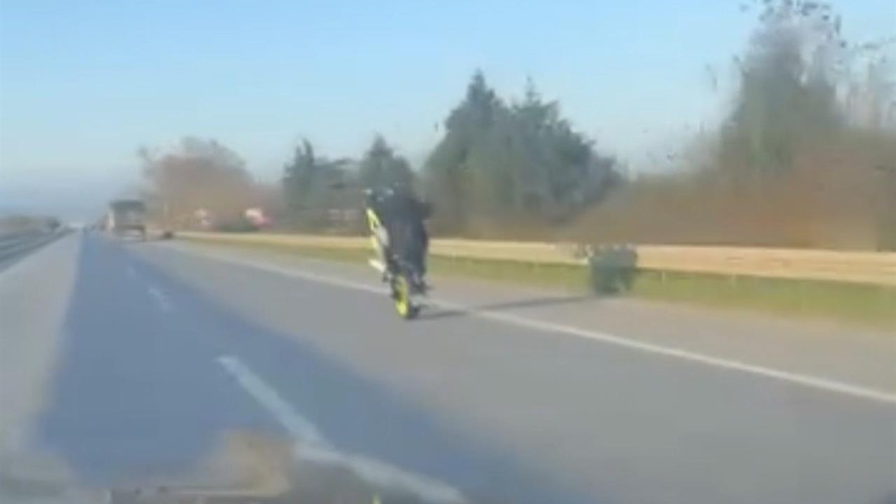 Edinilen bilgilere göre, Mustafakemalpaşa'da ana arterde ilerleyen iki motosiklet sürücüsü, trafikteki akışı hiçe sayarak tehlikeli hareketler sergiledi. Aşırı hızla ilerleyen sürücüler, zaman zaman tek tekerlek üzerinde giderek dikkati üzerlerine çekti. Bu sırada çevrede bulunan diğer sürücülerin ve yayaların güvenliği tehlikeye girdi. O anlar, bir vatandaş tarafından cep telefonu ile kaydedilirken, görüntülerdeki kontrolsüz hareketler, kazaya davetiye çıkardığı görüldü. Motosiklet sürücülerinin bu tür davranışları, trafikteki diğer araçlar için de büyük risk oluşturuyor. Yetkililer, bu tür tehlikeli hareketlerin önlenmesi için sürücülerin dikkatli olmalarını ve trafik kurallarına uymalarını öneriyor.