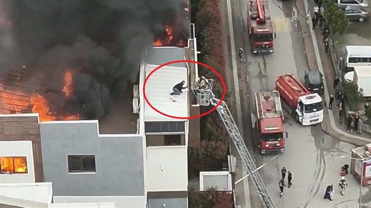 Bursa'nın Yıldırım ilçesine bağlı Millet Mahallesi'nde saat 11.30 sıralarında 6 katlı bir binanın çatı katında yangın çıktı. Yangını fark eden vatandaşlar, durumu hemen yetkililere bildirdi. İhbar üzerine olay yerine çok sayıda itfaiye, sağlık ve polis ekibi yönlendirildi. Yangın kısa sürede büyüyerek paniğe neden oldu ve ekipler, çatı katında mahsur kalan vatandaşı son anda kurtarmayı başardı. O anlar, çevredeki kameralar tarafından kaydedildi.