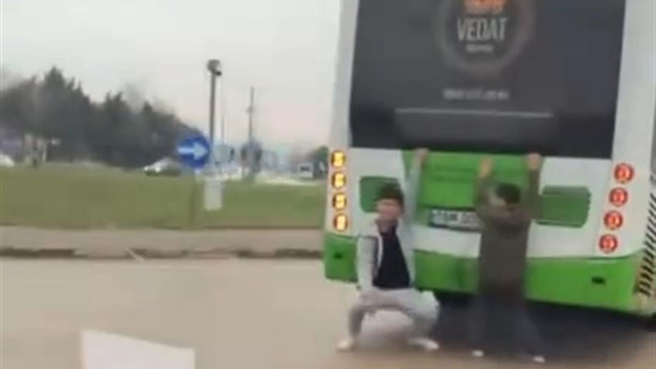 Akıllarında sadece oyun oynamak düşüncesi olduğu anlaşılan çocuklar, uzun süre otobüsün arkasında tutunarak ayaklarını yere sürmeye devam ettiler. O anlar, çevredeki bir vatandaşın cep telefonu kamerasıyla kaydedildi ve bu görüntüler, sosyal medyada hızla yayıldı.