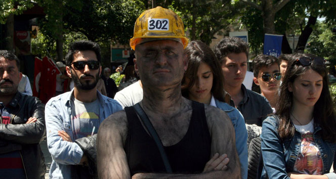 Bursa'nın Orhangazi Parkı'nda gerçekleşen eylemde, geçen yıl Soma'daki maden faciasında hayatını kaybeden 301 madencinin ölüm yıl dönümünde bir kişi, vücudunu siyaha boyayıp madenci bareti taktı. Kafasındaki barete yazdığı 302 rakamının kendisini temsil ettiğini belirten protestocu, çevredeki vatandaşların dikkatini çekti. Parktan geçen bazı kişiler, bu ilginç eylemi alkışlayarak destek verdiler. Protestocuya destek olan Fatih Mehmet Yağız, “Geçen yıl Soma’da 301 kişi hayatını kaybetmişti. Bugün onun için protesto yaptığını gördük. Biz de yanına gittik ve ona destek olduk” dedi.