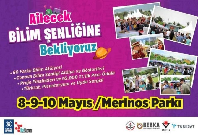 Bursa Bilim ve Teknoloji Merkezi, bu yıl dördüncüsünü organize edeceği Bilim Şenliği'ni 8-10 Mayıs 2015 tarihleri arasında Merinos AKKM'de gerçekleştirecek. Şenliğe, Türkiye'nin 50 ilinden okullar ve 30 üniversite katılım gösterecek. Şenlik, Bursa Büyükşehir Belediyesi, il Milli Eğitim Müdürlüğü ve BEBKA işbirliği ile gerçekleştirilecek. Bu yılki etkinliğin teması tasarım ve inovasyon olarak belirlendi. BTM Genel Koordinatörü Rıfat Bakan, jüri üyelerinin sektörün önde gelen iş insanları ve akademisyenlerden oluşacağını ifade etti. Yarışmalarda ilk üçe giren projelere toplam 65 bin lira ödül verilecek. Temel eğitim, orta öğretim ve mesleki eğitim okullarının birincilerine 5 bin, ikincilerine 3 bin ve üçüncülerine 2 bin lira ödül takdim edilecek. Yüksek öğrenim projeleri için birincilere 6 bin, ikincilere 4 bin ve üçüncülere 3 bin lira verilecek. Ayrıca, keşif projelerinin birincisine 10 bin, ikincisine 7 bin ve üçüncüsüne 5 bin lira ödül verilecek. Bakan, Bilim Şenliği'nin uluslararası alanda da ilgi çektiğini belirterek, Cenova Bilim Festivali'nin etkinliğin uluslararası partneri olduğunu vurguladı. Etkinlik sırasında 40 atölyede 60 farklı bilimsel etkinlik gerçekleştirilecek ve 150 bin ziyaretçi hedefleniyor.
