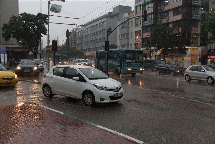 Bursa'da akşam saat 18.20 sularında aniden bastıran yağmur, yaşamı olumsuz etkiledi. Meteorolojinin günler öncesinden yaptığı uyarılara rağmen, Bursalılar yağmura hazırlıksız yakalandı. Şehir merkezinde yoğunlaşan yağış, kısa sürede etkisini artırarak yollarda su birikintileri oluşturdu. Bu durum, trafikte uzun araç kuyruklarının oluşmasına neden oldu. Islanan vatandaşların sığınacak yer ararkenki koşuşturmaları, kameralara yansıdı. Bursa Meteoroloji Müdürlüğü yetkilileri, sağanak yağışın gece boyunca yer yer devam edeceğini bildirdi.