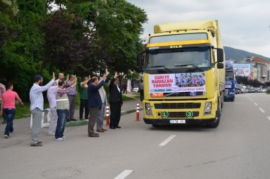 Bursa İHH, 180’inci yardım TIR’ını, makamında uğradığı silahlı saldırı sonucu şehit edilen merhum Gürsu Belediye Başkanı Cüneyt Yıldız hayrına Suriye’ye gönderdi. 1 TIR dolusu yardım malzemesi, Bursa İHH Gürsu Temsilciliği’nden önceki gün dualarla yola çıktı. TIR’ın uğurlanması için düzenlenen programda, Bursa İHH Başkanı Hüseyin Kaptan, toplamda 5 TIR yardım malzemesinin bölgeye gönderildiğini belirtti.