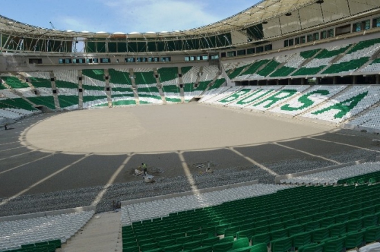 Stadyum inşaatının son aşamalarında olunduğunu vurgulayan Altepe, "Bursa Büyükşehir Belediyesi olarak bu dönemdeki en büyük eserimiz olan yeni stadyum, aynı zamanda belediye tarihimizdeki en büyük projelerden biri. 185 bin metrekarelik alana sahip olan yeni stadyumda, iç mekan ve dış kaplama çalışmalarının yanı sıra sahada da son 20 cm’lik malzeme kaplaması yapılmaya başlandı. Çimlerin serilmesine de 10 gün içinde geçilecektir" şeklinde konuştu.
