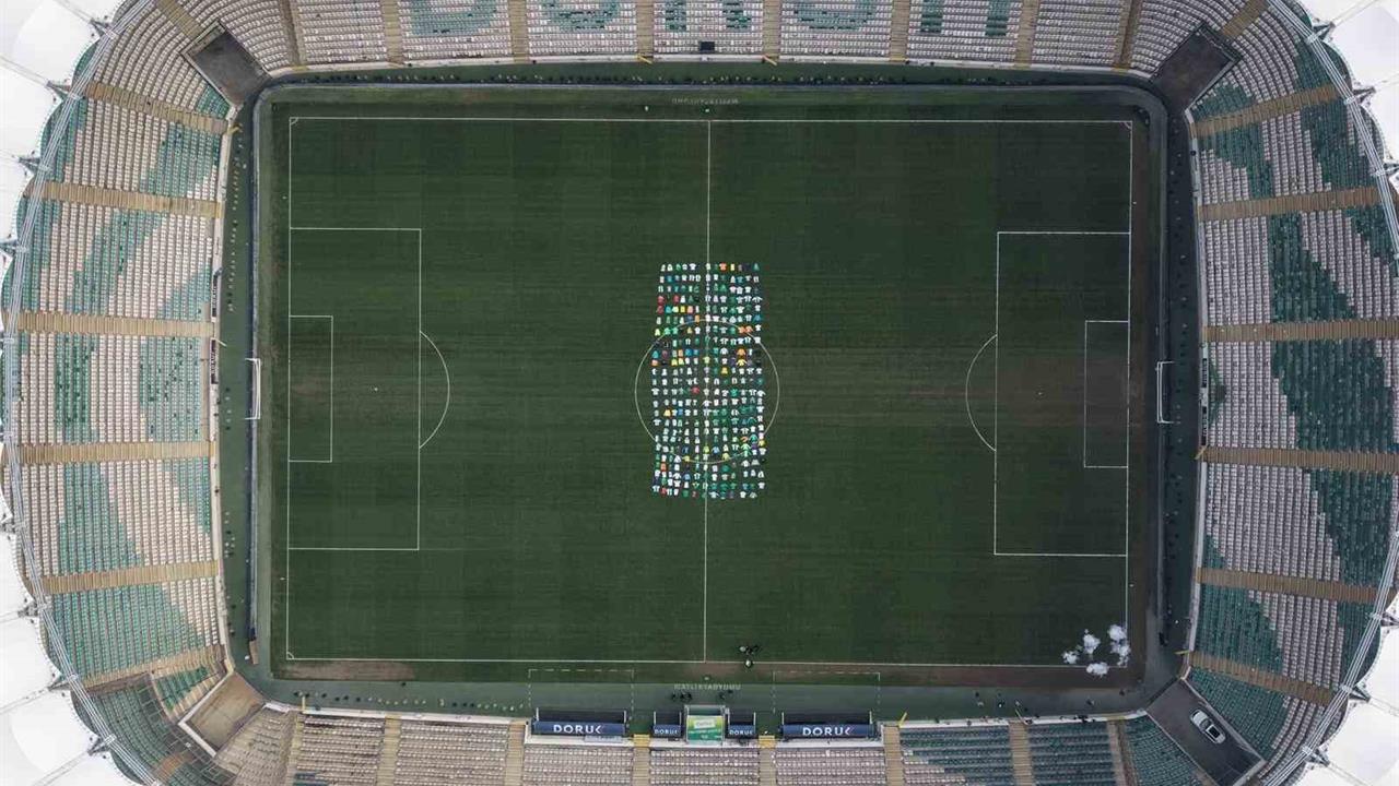 Bursa Atatürk Spor Kompleksi Matlı Stadyumu'nda düzenlenen etkinlikte, yüzlerce imzalı forma sahaya dizilerek etkileyici bir koreografi ortaya kondu. Bursaspor taraftarları, yeşil-beyaz renklere olan bağlılıklarını gösteren bu özel çalışmayı coşkuyla karşıladı. Etkinlik, hem kulübün tarihine duyulan saygıyı hem de taraftarların birlikteliğini pekiştirdi. Görüntüler, gökyüzünden de izlenerek büyük bir şölen havası yarattı. Bu anlamlı organizasyon, Bursaspor'un köklü geçmişini ve taraftarların kulübe olan bağlılıklarını bir kez daha gözler önüne serdi.