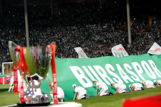 Taraftarlar, maç öncesinde futbolcularını tribünlere çağırarak onlara büyük destek verdi. Oyunculara tek tek yumruk şov yaptıran taraftarlar, yeşil-beyazlı ekip için güzel bir görsel şov sergiledi. Ayrıca, atkılarını açarak marş söyleyen Bursasporlu taraftarlar, stadyumda coşkulu bir atmosfer yarattı.
