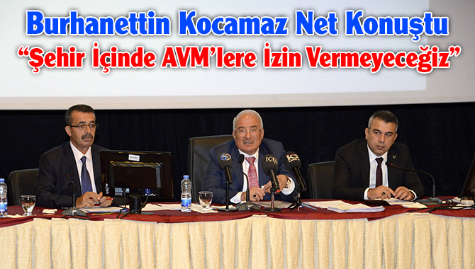 İdare tekliflerine ait 61 maddenin oylanmasının ardından komisyon raporlarına ait 21 maddenin oylanmasına geçilen Meclis’te parsellerin birleştirilip ada haline getirilmesiyle ilgili madde için Başkan Kocamaz, “Parselleri birleştirilerek şehrin içerisine AVM yapma düşüncesinde olanlar var. Kimse böyle bir hataya düşmesin. Şehir içerindeki esnafın ekmeğiyle oynamak isteyenlere fırsat vermeyeceğiz. AVM yapılacaksa şehrin dışında yapılsın. Esnaflarımızın itirazına rağmen şehrin içerisinde büyük alışveriş merkezleri yapılmasına müsaade ettiğimizde hepimiz sıkıntı çekeriz. Esnaflarımızı kendi elimizle zor duruma sokmuş oluruz. Biz bu koltukta oturduğumuz müddetçe buna izin vermeyeceğiz” dedi.