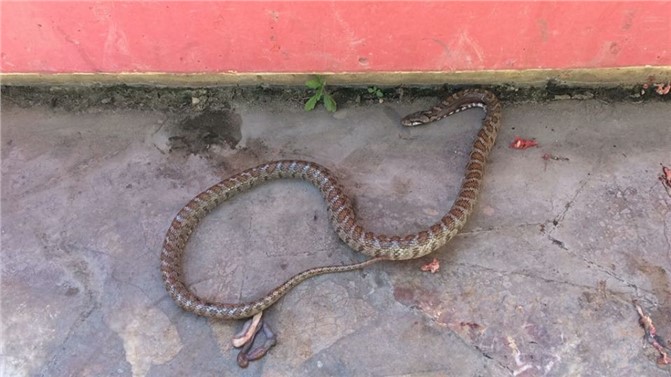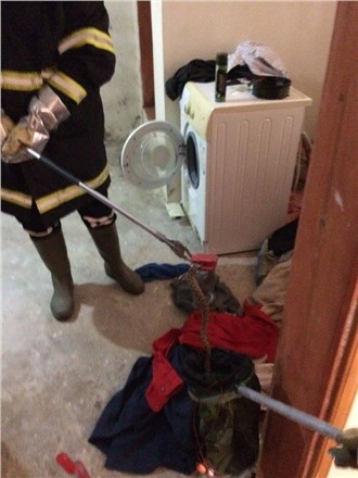 Tek katlı ve bahçeli olan, M.Diker ve ailesinin yaşadığı evde, ev sakinlaeri kirli çamaşır sepeti içerisinde yılan olduğunu farketti.