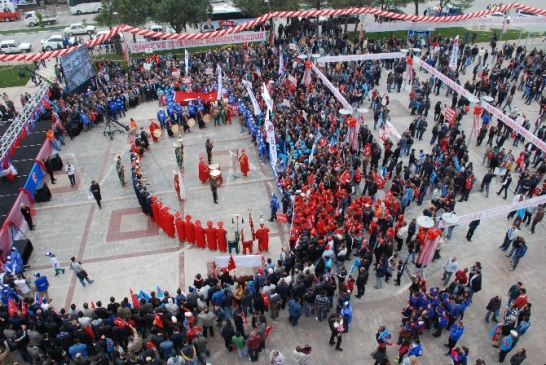Çanakkale'nin Biga ilçesinde 1 Mayıs İşçi Bayramı, Türk-İş ve Türk Metal İş Sendikası'nın düzenlediği mitingle coşkuyla kutlandı. Etkinlik, ilçe meydanında gerçekleştirildi ve yaklaşık 5 bin kişi, eşleri ve çocuklarıyla birlikte etkinliklere katıldı. Türk Metal İş Sendikası'na bağlı İÇDAŞ tesislerinde çalışan işçiler, sabah saat 09.30'da kortejler halinde Belediye Meydanı'na geldi. Davul zurna eşliğinde halaylar çekerek 1 Mayıs'ı kutlayan emekçiler, çeşitli pankartlarla mesajlar verdi.