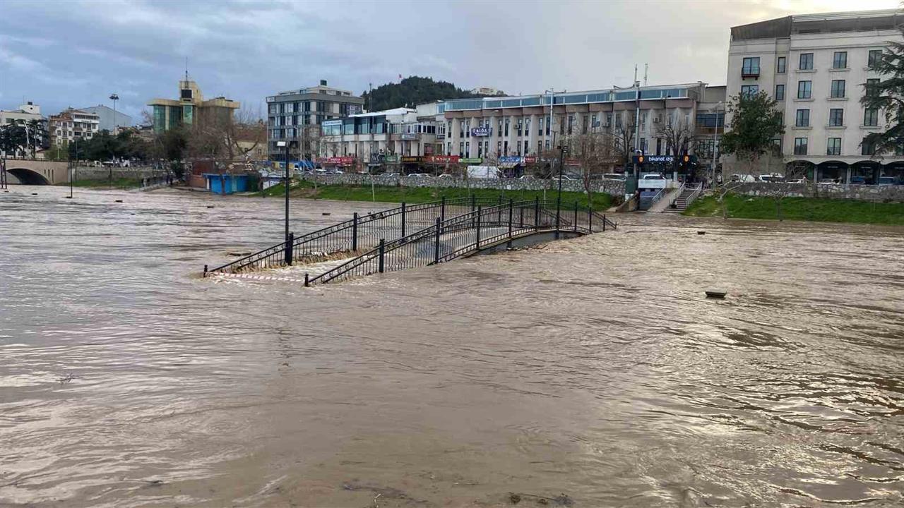 Biga ilçesinde etkili olan yağmur sonrası Kocabaş Çayı taştı ve vatandaşların otopark olarak kullandığı alan sular altında kaldı.