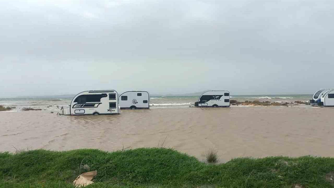 Çanakkale'nin Ezine ilçesinde meydana gelen fırtına sonucunda park halindeki karavanlar su altında kaldı. Olay, fırtınanın etkisiyle denizin kara ile birleşmesi sonucu gerçekleşti.