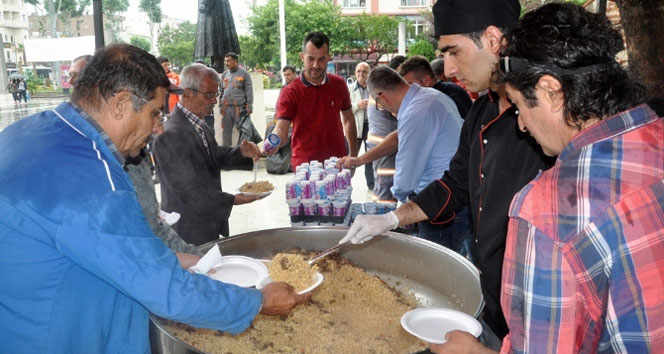 Dağıtılan şükür pilavı ve ayranlar, halka ikram edildi.
