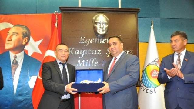 MERSİN HABER- Tarsus Belediyesi kardeş olan Kırgızistan'ın Celalabad şehrinden bir heyet kente geldi. Belediye Başkanı Şevket Can tarafından meclis salonunda ağırlanan Kardeş Şehir Celalabad heyetinde Celalabad Belediye Başkanı Salaiddin Avazon, Meclis Başkanı Ernisbek Ormokov, belediye meclis üyeleri, daire müdürlerin yanı sıra işadamları bulunuyor. Kardeş şehir Celalabad'lıları tekrar Tarsus'ta görmekten son derece mutlu olduğunu ifade eden Başkan Can, Türk Milleti olarak Kırgızistan'ı çok sevdiklerini söyledi. Can, " Celalabat şehriyle 2011 yılında o dönemin Belediye Başkanı Sayın Burhanettin Kocamaz zamanında kardeş şehir anlaşması imzalanmıştı. Biz Türk Milleti olarak sizleri can-ı gönülden seviyoruz, sizleri bizim milletimizin bir parçası, aynı millet olarak görüyoruz. Bu kardeş şehir anlaşmasını imzalamamızdaki gayemizde sizlerle birlikte bağımızı pekiştirmektir. Kırgızistan'ın Celalabad kenti ile birlikte bugün İsveç'in Malmö, Almanya'dan Langen, Türk Dünyasından Tataristan'dan Aznakay, Azerbaycan'dan Hatai, Kazakistan'dan Essik, şehirleriyle bu ilişkileri taçlandırmış oluyoruz. Ayrıca Türkiye içerisinden Çanakkale-Eceabat, Antalya ve Muğla belediyeleri ile kardeşlik ilişkilerimiz sürüyor. KKTC'den de Tatlısu Belediyesi ile kardeşlik ilişkilerimiz devam ediyor. 2011 yılında imza altına aldığımız kardeşliğimizi her geçen gün pekiştiriyoruz. Biz sizle kardeş olduğumuza göre aynı zamanda bu saydığım şehirler sizlerin de kardeşidir. Yapmış olduğunuz ziyaretten mutluluk duyduğumu belirtmek istiyorum. Daha önceden yine Celalabad'dan belediyecilik için gelen mühendis arkadaşlarımız vardı, gelip şehrimizi ve belediyemizi teknik ekip olarak ziyaret etmişlerdi. Her zaman sizleri şehrimizde görmekten, ağırlamaktan onur duyarız" dedi. Türkleri çok sevdiklerini ifade eden Celalabad Belediye Başkanı Salaiddin Avazon, Türkiye'de kendi evlerinde olduklarını belirtti. Avazon, "Bizi burada çok güzel ve sıcak karşıladığınız için başta belediye başkanımız olmak üzere hepinize çok teşekkür ediyoruz. Bizi bir kardeş sevgisiyle karşıladınız. Buraya biz; kendim belediye başkanı olarak yanımdaki milletvekili arkadaşlarım ve Celalabad Belediyesinde çalışan kurumların başkanlarıyla geldik. Biz gelen arkadaşlarımızla beraber, başkan yardımcılarımız, milletvekillerimizle ve çalışan insanlarımızla beraber Celalabad'da son 1-2 yıl içinde çok iyi işler yaptık. Bunlardan en güzeli de Celalabad'daki en büyük sokaklardan birine Tarsus adı verildi ve Tarsus Caddesi oldu yaklaşık 500.000 dolar harcanarak asfaltlanıp çevresi güzelleştirildi. Bizde önümüzdeki sene sizleri başkanımızla beraber bütün çalışanlarınızı Celalabat şehrimize bekliyoruz" şeklinde konuştu. Konuşmaların ardından iki başkan günün anısına birbirilerine hediye verdiler.