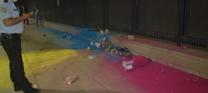 Kamera görüntülerini inceleyen nöbetçi askerler, karton kolinin, İnönü Bulvarı köprü altından geçmekte olan bir otobüse takıldığını saptadı. Otobüsün geçmesinin ardından yolda kalan kolinin, araçların ilerleyişini engellediği ve bu nedenle bir vatandaş tarafından komutanlık önüne bırakıldığı ifade edildi. Olayın, Cumhurbaşkanı Erdoğan'ın geçiş güzergahında gerçekleşmesi ve o sırada Erdoğan'ın bir televizyon programında canlı yayında bulunması, polis ekiplerini alarma geçirdi. Patlama, Erdoğan'ın geçişinden önce gerçekleşti ve yola dağılmış olan boyalar temizlik görevlileri tarafından temizlendi.