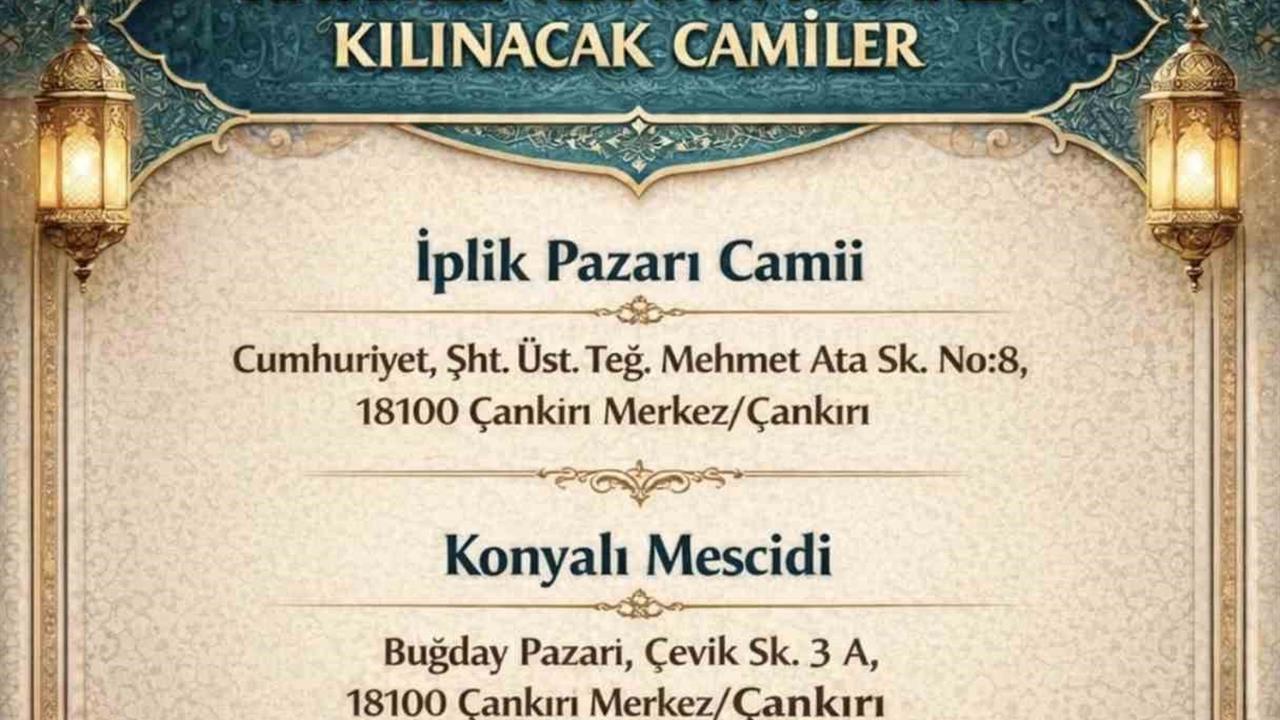Çankırı’da Ramazan ayı süresince hatimle teravih namazlarının kılınacağı camiler belirlendi. Çankırı İl Müftülüğü tarafından yapılan açıklamaya göre, il merkezindeki İplik Pazarı Camii ve Konyalı Mescidi’nde teravih namazları hatimle eda edilecek. Bu uygulama, Ramazan boyunca Müslümanların manevi atmosferini artırmayı hedefliyor.