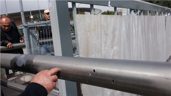 Ayrıca patlamanın etkisiyle etrafa saçılan bilyelerden bazıları karşıda reklam panosuna ve yol kenarındaki korkuluklara saplandı. Patlamanın şiddeti ile savrulan vatandaşlardan bazısının bedeni reklam panolarının içine düşmüş. Panoların bağlı olduğu korkuluklar eğilip bükülerek cansız bedenler buradan çıkartılmış.