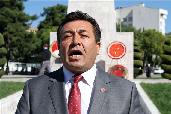 İl Başkanı Alban, burada yaptığı açıklamada, "Gönül arzu ederdi ki çelenkler aynı anda sunulsun. Ne yazık ki 13 yıldır iktidarı elinde bulunduran hükümet, bir sürü kanun değişikliğiyle ülkenin birlikte sunduğu çelenkleri dahi ayrıştırır duruma geldi. İkinci defa İstiklâl Marşı'nı okumak, saygı duruşunda durmak ve çelenk sunmak durumunda kaldık. Bizler Türkiye Cumhuriyeti'nin en büyük bayramını coşkuyla kutlamak için tüm ilçelerimizde bu saatte törenimizi gerçekleştiriyoruz." dedi. Ülkenin çok sıkıntılı günler geçirdiğini söyleyen Alban, "Bizlerin üzerine düşen büyük sorumluluklar var. Bu sorumluluk ülkemizin birliğini, beraberliğini korumak ve onu sağlamaktır. 'Benim iki büyük eserim var.' diyen Gazi Mustafa Kemal Atatürk, 'Biri Cumhuriyet Halk Partisi, diğeri ise Türkiye Cumhuriyeti.' demiştir. Atam, siz merak etmeyin, sizin torunlarınız sağ, başı dimdik. Bizler yaşadığımız sürece eserlerinize sahip çıkacağız, ülkemizin birliğini, beraberliğini koruyacağız." diye konuştu. CİHAN