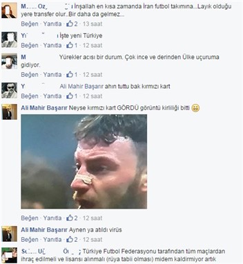 Yapılan paylaşıma gelen yorumlarda ise Avukat Başarır; “Neyse kırmızı kart gördü görüntü kirliliği bitti, Aynen ya atıldı virüs” şeklinde ifadeler kullanarak Trabzonsporlu Aykut Demir’e hakaret etmeyi sürdürdü.