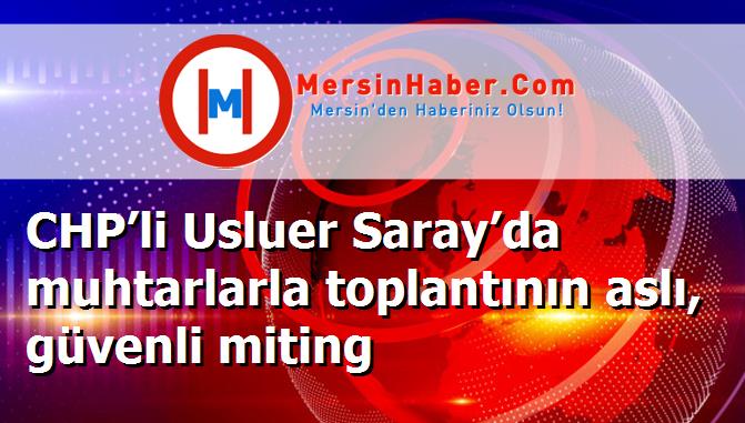 Cumhurbaşkanı Erdoğan’ın Saray’da muhtarlarla sık sık toplantı yapmasını da eleştiren Usluer, bu durumu ‘güvenli miting’ olarak değerlendirdi. Usluer, şu ifadeleri kullandı: “Cumhurbaşkanı Saray'da muhtarlar toplantısına tam gaz devam ediyor. Adı muhtarlarla toplantı ama aslı 'ulusa sesleniş', ‘güvenli miting. Açılacak yer, atılacak temel kalmayınca, eh üstüne güvenlik sorunu da eklenince saraydan naklen miting. İşin kolayı mı?”