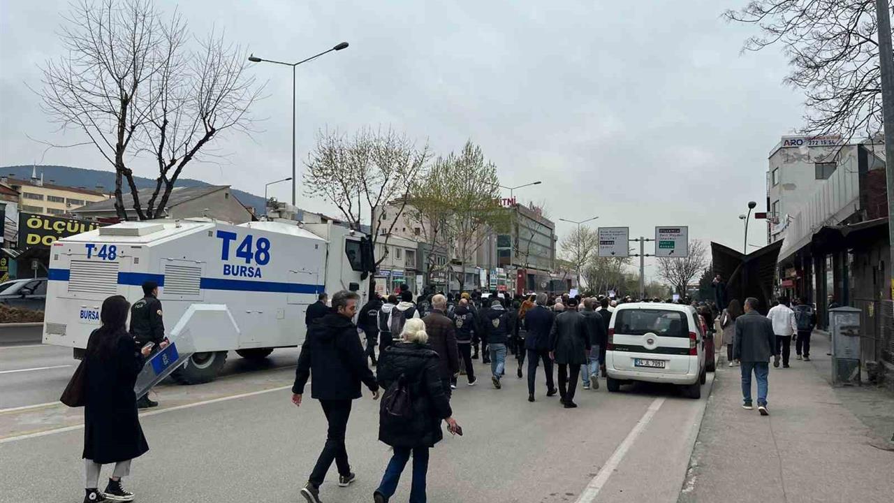 Edinilen bilgilere göre, CHP’li meclis üyeleri ve partililer, belediye binası önünde toplandıktan sonra Ankara Caddesi'ne çıkarak yolu kapattı. Eylem nedeniyle Ankara Caddesi ile bağlantılı yolların trafiği durma noktasına geldi. Bursa İl Emniyet Müdürü Kadir Gökçe’nin eylem sırasında CHP’li milletvekilleriyle görüşerek, yolu kapatmamaları yönünde ricada bulunduğu öğrenildi.