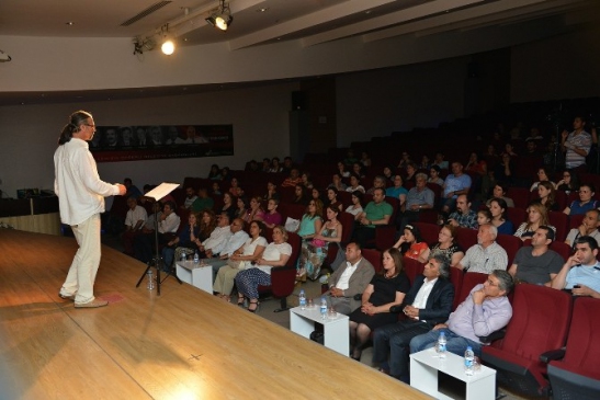 Çiğli Belediyesi Konferans Salonu'nda gerçekleştirilen “Nazım’la Nazım’ca” etkinliğine Çiğli Belediye Başkanı Hasan Arslan, eşi Ergül Arslan ve çok sayıda vatandaş katıldı. Usta şairin eserleri tiyatral bir dinletide seslendirildi, katılımcılar duygusal anlar yaşadı. Müziklerini İzmir Müzisyenler Derneği solistlerinin seslendirdiği etkinlikte, Nazım Hikmet’in en güzel şiirlerinden bestelenen eserler dinletildi. Gecenin sonunda, Hasan Arslan tarafından tiyatro eğitmenlerine ve müzisyenlere plaket ve çiçek takdim edildi.