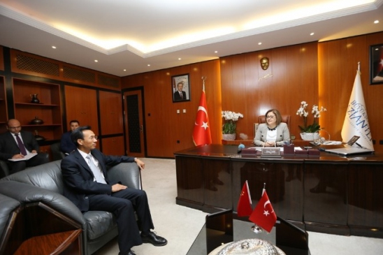 Şahin, Gaziantep’teki güçlü örgütlenmelerin ve sektör temsilciliğinin, Çin ve Türk iş adamları arasındaki ilişkilerin geliştirilmesi için fırsatlar sunduğunu dile getirdi. Turizm alanında da işbirliklerinin artırılması gerektiğini belirten Şahin, İpekyolu’nun güçlendirilmesi gerektiğinin altını çizdi. Gaziantep’in 22 ülkede kardeş şehri olduğunu hatırlatan Şahin, Çin ile de bir kardeş şehir ilişkisi kurulmasını istedi.