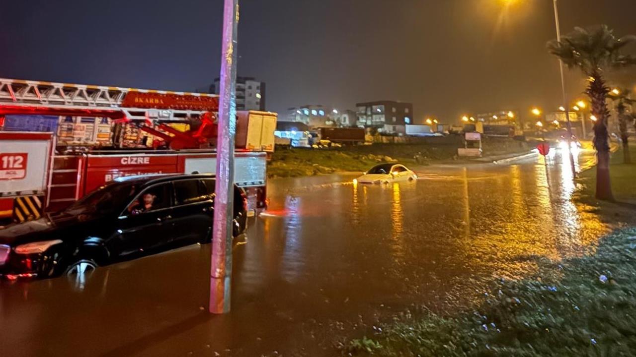 Şırnak'ın Cizre ilçesinde gece saatlerinde etkisini artıran sağanak yağış, son yılların en yoğun yağış dönemini beraberinde getirdi. Sağanak, özellikle Yeni Şırnak Yolu üzerinde büyük su birikintilerine yol açarak caddeleri ve sokakları adeta göle çevirdi. Edinilen bilgilere göre, Cizre Park AVM civarında seyir halindeki iki araç, ani yükselen yağmur sularının arasında kaldı. Motorun stop etmesiyle birlikte, üç kişi suyun ortasında mahsur durumda yardım beklemeye başladı. Olayı gören çevredeki vatandaşların ihbarı üzerine, Cizre Belediyesi İtfaiye Müdürlüğü ekipleri hızla bölgeye sevk edildi.