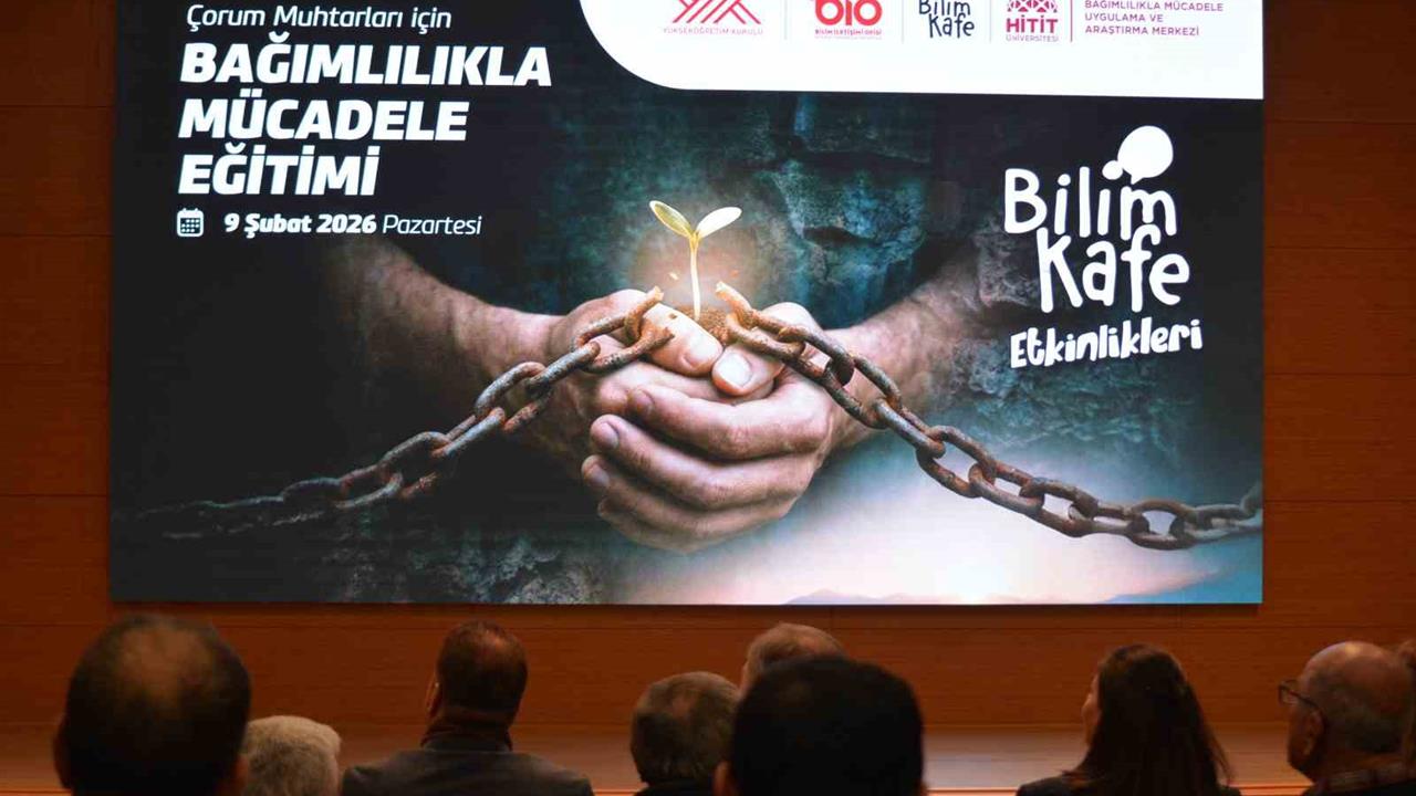 Çorum Hitit Üniversitesi, mahalle ve köy muhtarlarını bilinçlendirmek amacıyla "Çorum Muhtarları İçin Bağımlılıkla Mücadele Eğitimi Programı" düzenledi. Ethem Erkoç Konferans Salonu’nda gerçekleştirilen bu programda muhtarlar, bağımlılıkla mücadelede erken farkındalığın önemini öğrenirken, alanlarında uzman akademisyenlerden bilgi aldı. Programın içeriğinde, bağımlılıkla mücadelede risk altındaki bireylerin erken tespit edilerek ilgili kurumlara yönlendirilmesinin kritik rolü vurgulandı.