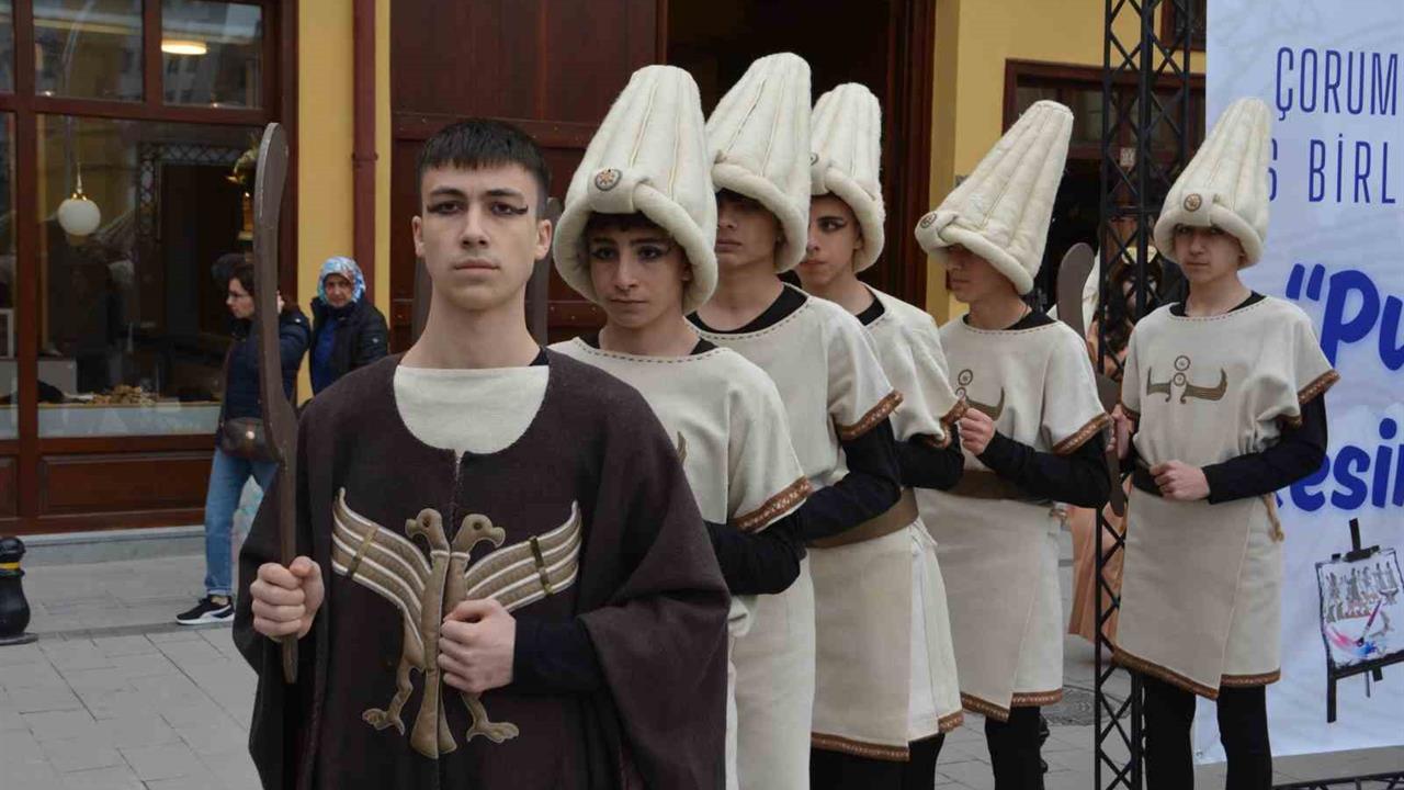 Çorum'da Hitit İmparatorluğu'nun önemli kadın figürlerinden biri olan Puduhepa'nın anısına düzenlenen Kadın Kültür Festivali'nin bu yılki etkinlikleri, tarihi Veli Paşa Hanı önünde gerçekleştirildi. Festivalde, 34 sanatçının eserleri katılımcılara sunuldu. Program, Hitit dönemini yansıtan kostümler giymiş figüranların geçişiyle ve açılış konuşmalarıyla başladı. Konuşmaların ardından protokol üyeleri tarafından serginin kurdelesi kesildi ve sergi ziyarete açıldı. Etkinliğe katılan sanatseverler, tarihi hanın mistik atmosferi eşliğinde eserleri yakından inceleme fırsatı buldular. Program, eserleri oluşturan sanatçılara protokol üyeleri tarafından teşekkür belgelerinin verilmesiyle son buldu.