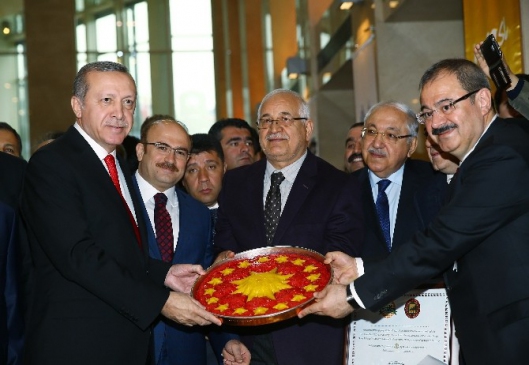 4. Türk Patent Ödülleri törenine katılan Cumhurbaşkanı Recep Tayyip Erdoğan’a, Cumhurbaşkanlığı forsu motifinde ve sarı-kırmızı renkte hazırlanan baklava sürprizi yapıldı. Törende, Gaziantep baklavalarının tanıtıldığı stantları gezen Erdoğan, baklavanın renklerine dikkat çekerek, “Bunu yaparken Fenerli yapmalıydınız” diyerek espri yaptı.