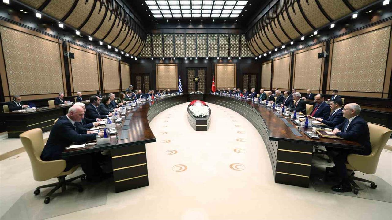 Cumhurbaşkanı Erdoğan ve Yunanistan Başbakanı Miçotakis, Cumhurbaşkanlığı Külliyesi'nde Türkiye-Yunanistan 6. Yüksek Düzeyli İşbirliği Konseyi Heyetlerarası Görüşme Oturumu’na başkanlık etti. Toplantının ardından iki ülke arasında yapılan anlaşmaların imza töreni gerçekleştirildi. İkili imza töreninin ardından ortak bir basın toplantısı düzenlendi.