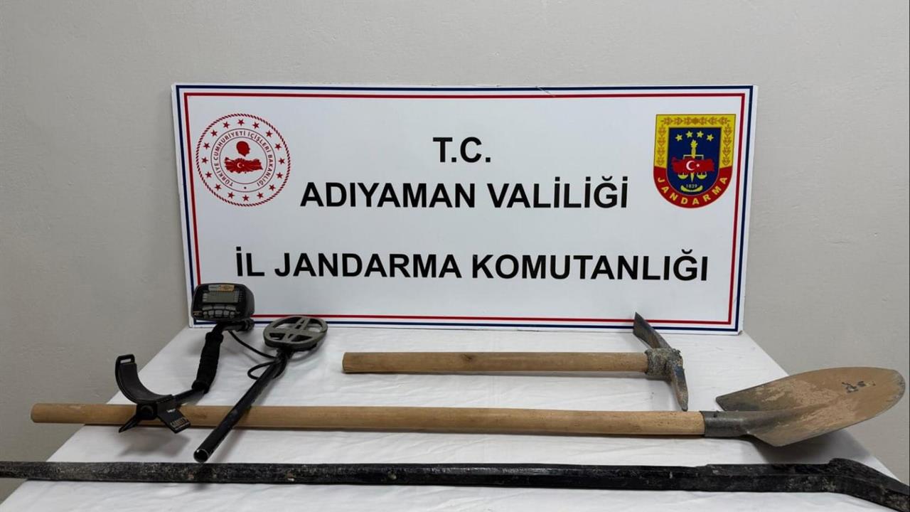 Adıyaman il merkezinde gerçekleştirilen operasyonda, define arayan şahıslara yönelik yapılan baskında, 1 adet dedektör, 1 adet kürek, 1 adet kazma ve 1 adet demir aparat ele geçirildi.